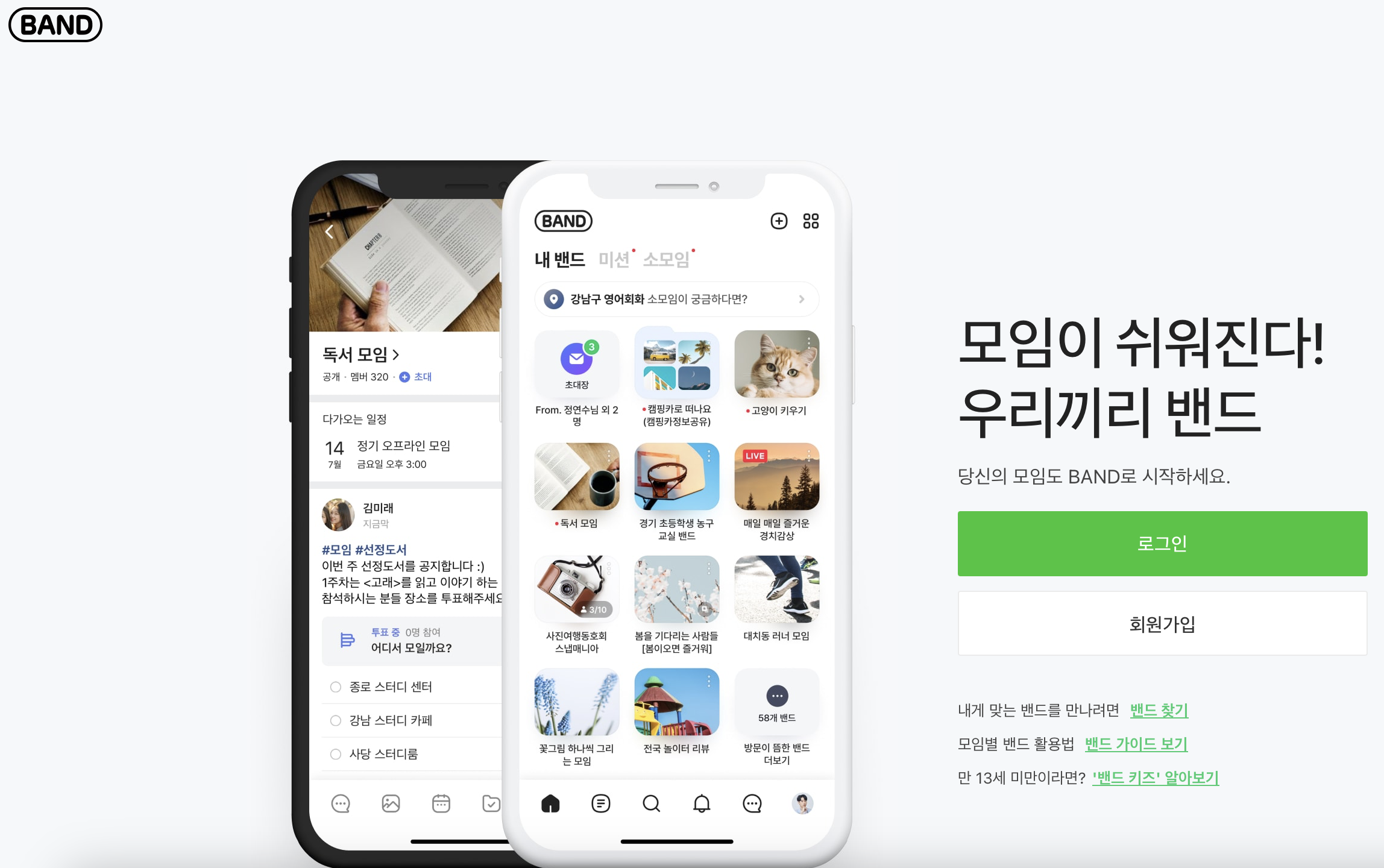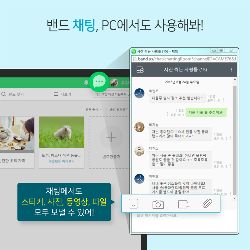 네이버 밴드는 다양한 주제의 그룹을 만들고, 그 안에서 소통할 수 있는 플랫폼입니다.