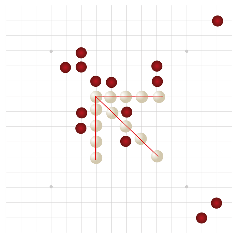 오목의 기본 규칙은 매우 간단합니다. 15x15 보드 위에 흑과 백의 돌을 번갈아 놓으며, 먼저 5개의 돌을 수평, 수직, 대각선으로
