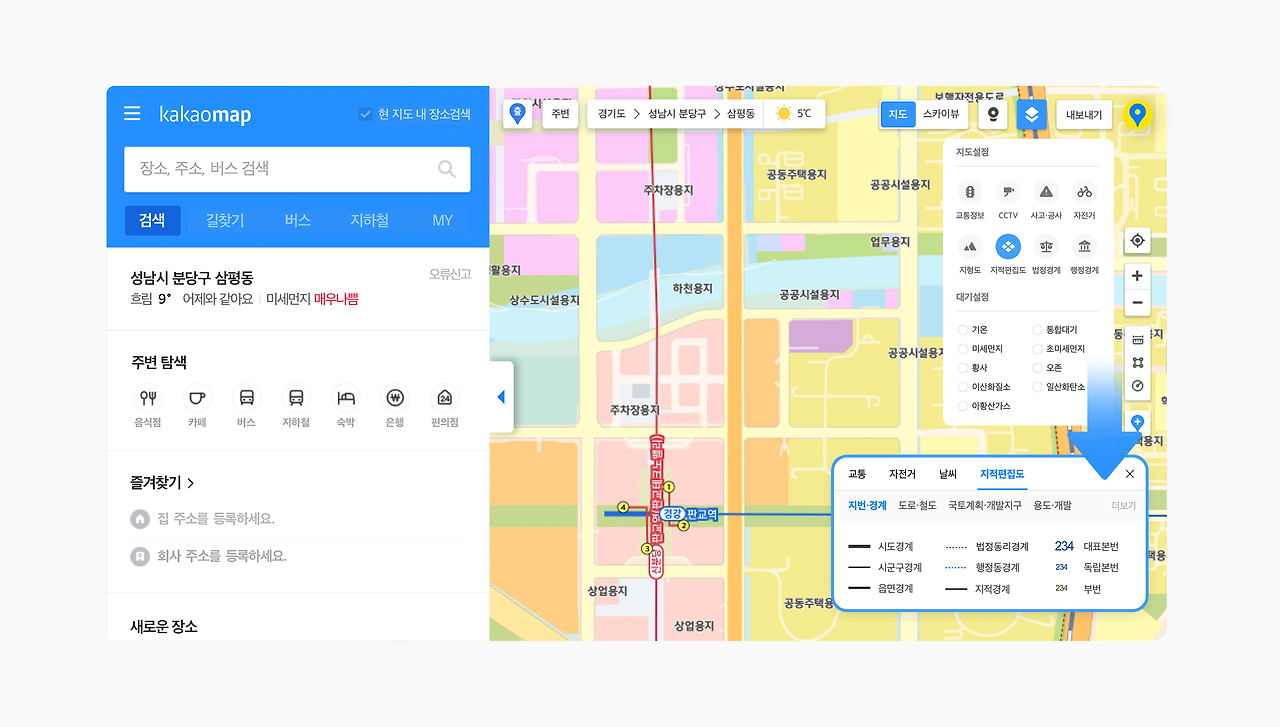 도로, 건물, 대중교통 정보는 물론, 주변 맛집이나 관광지 정보까지 한눈에 확인할 수 있습니다.