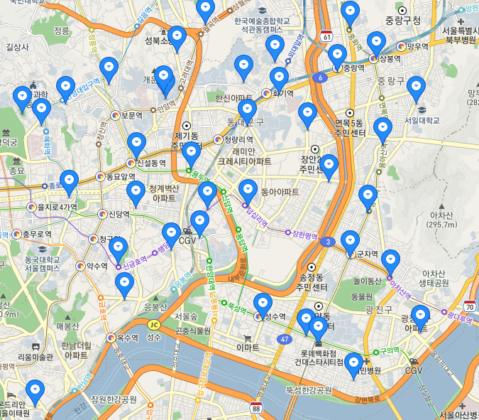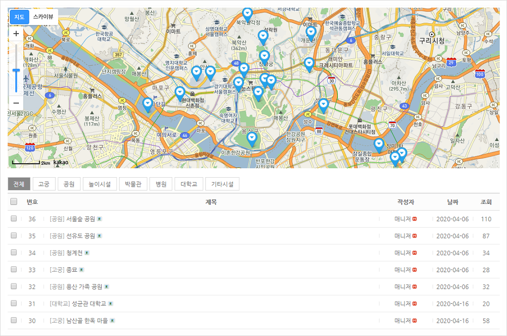 - 로드뷰 활용 : 특정 장소를 클릭하여 로드뷰를 통해 주변 환경을 확인할 수 있습니다.