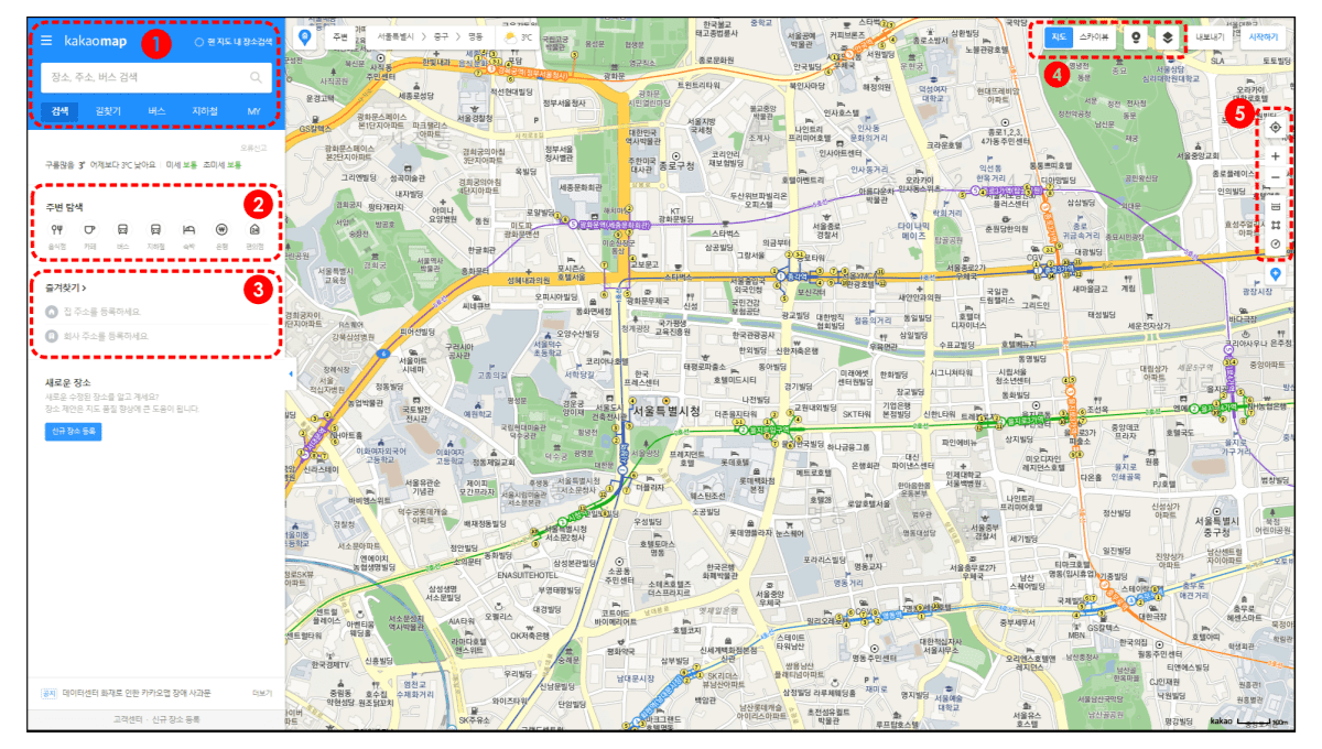 - 장소 검색 : 원하는 장소를 검색합니다.