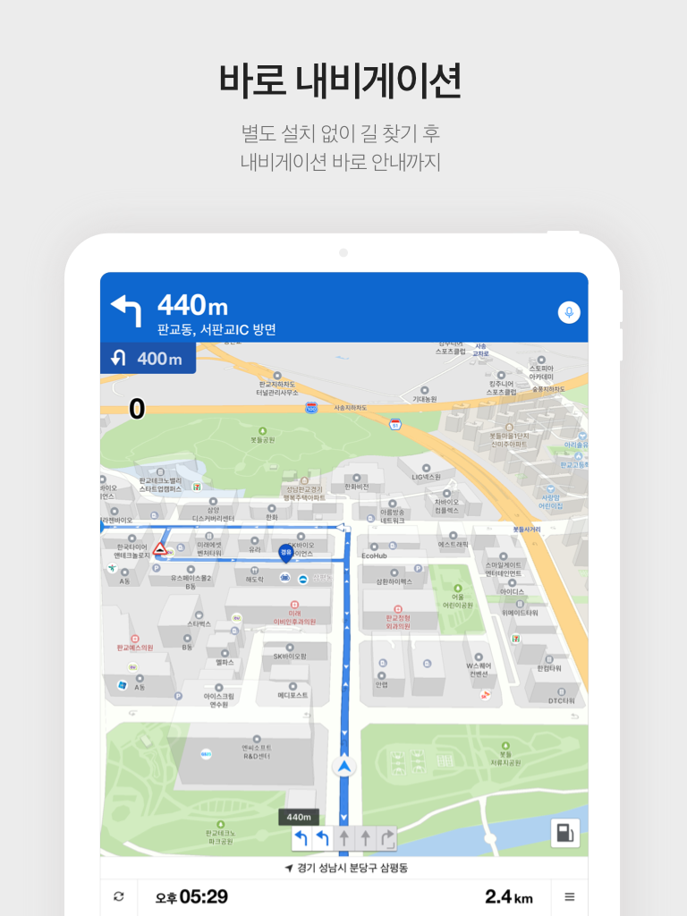 - 로드뷰 : 실제 도로의 모습을 360도로 볼 수 있는 기능으로, 가고자 하는 장소의 주변 환경을 미리 확인할 수 있습니다.