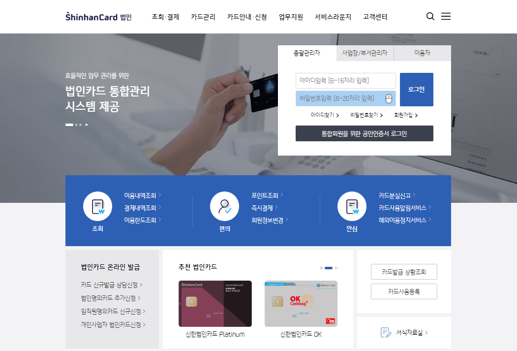 신한카드 홈페이지는 사용자 친화적인 디자인과 다양한 기능으로 많은 고객들에게 사랑받고 있습니다.