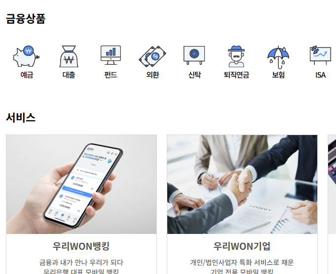 우리은행은 고객의 편의를 위해 다양한 금융 서비스를 제공하고 있습니다.