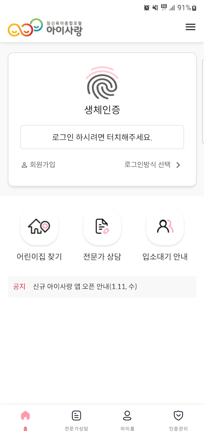 아이사랑 보육포털사이트를 이용하기 위해서는 먼저 회원가입을 해야 합니다.