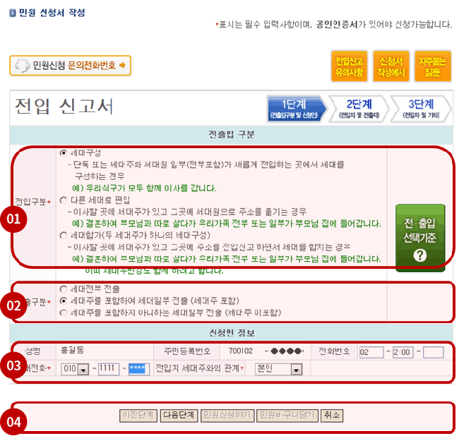 - 신청인 정보를 입력하고, 필요한 서류를 첨부합니다.