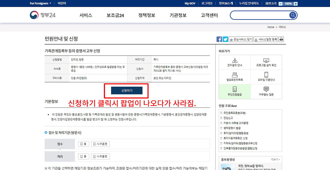 정부민원 24시를 통해 필요한 민원 서비스를 간편하게 이용하시기 바랍니다.