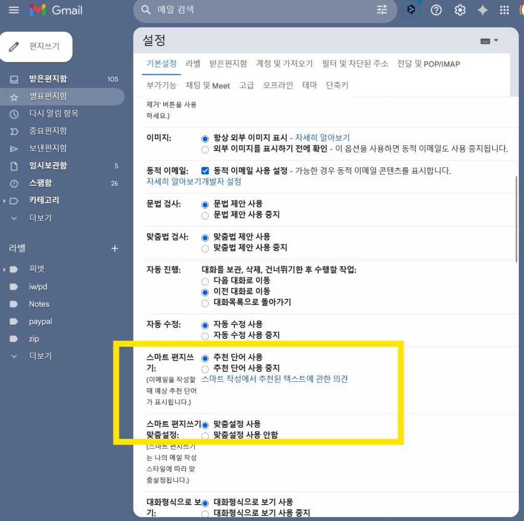 Gmail은 다양한 기본 기능을 제공합니다: