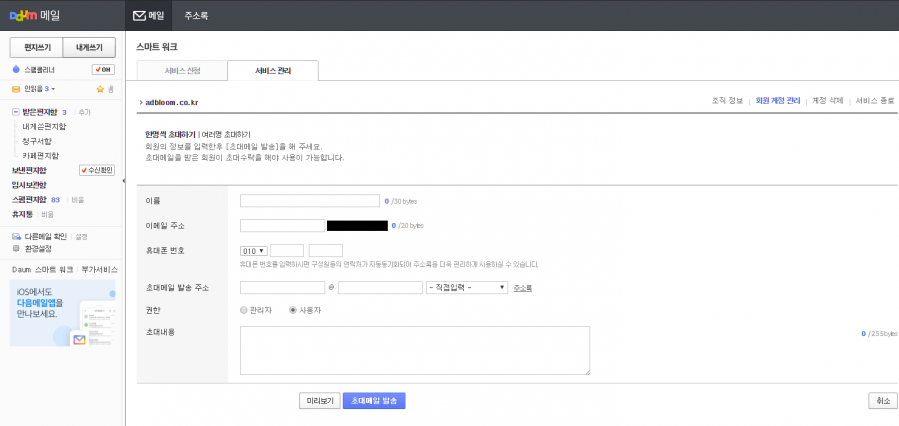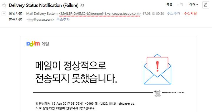 이메일 사용 중 문제가 발생할 수 있습니다.