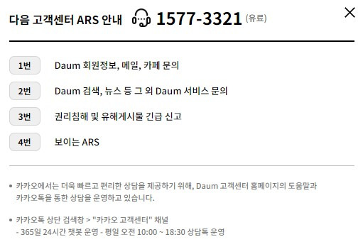 자체 해결이 어려운 경우, Daum 고객센터에 문의하여 도움을 받을 수 있습니다.
