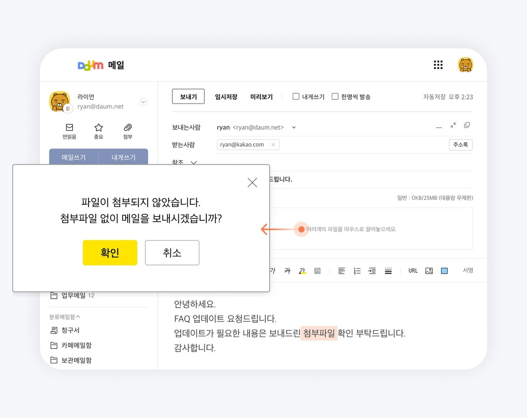 다음 이메일은 카카오에서 제공하는 이메일 서비스로, 사용자가 편리하게 이메일을 송수신할 수 있도록 다양한 기능을 제공합니다.