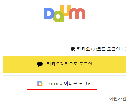 - 카카오 계정으로 로그인 또는 Daum 아이디로 로그인합니다.