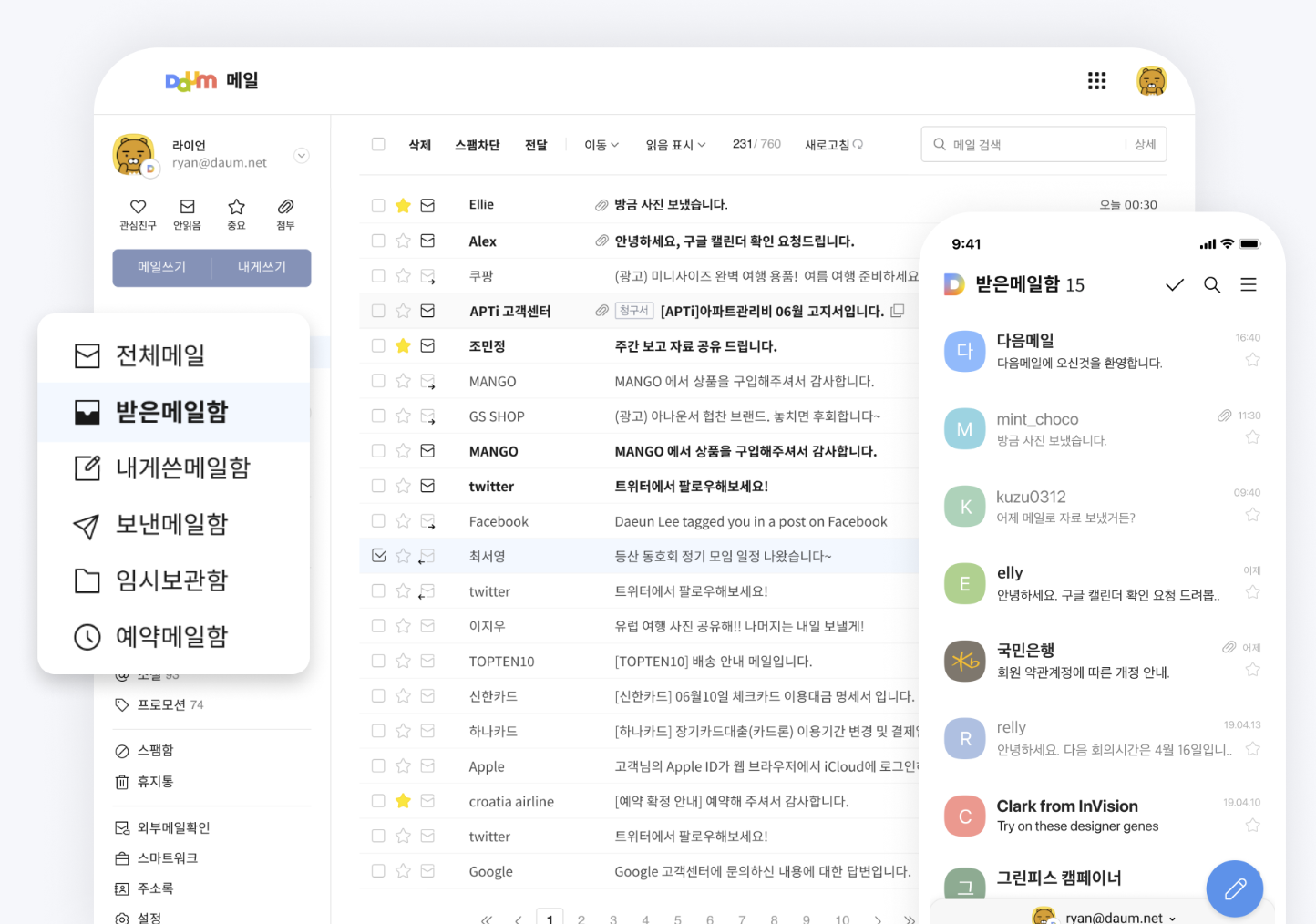 다음 이메일은 단순한 이메일 송수신 외에도 여러 유용한 기능을 제공합니다.