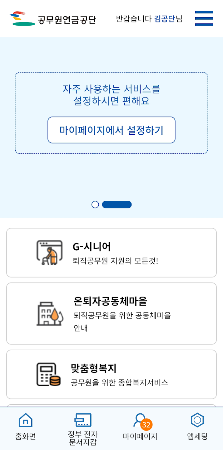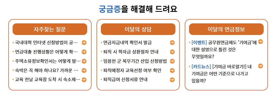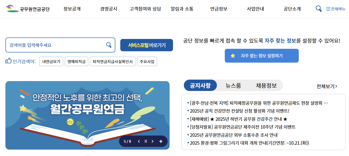 이곳에서는 공무원 연금과 관련된 다양한 정보와 서비스를 제공하고 있습니다.