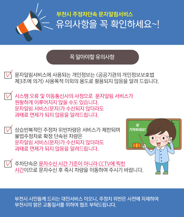 주정차단속 문자알림 서비스를 이용할 때는 몇 가지 주의사항이 있습니다.