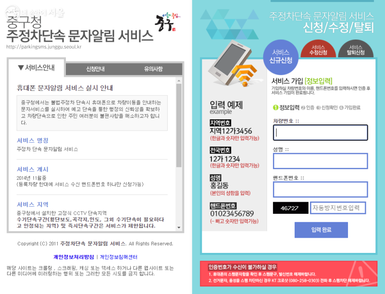 - 서초구 주정차단속 문자알림 서비스