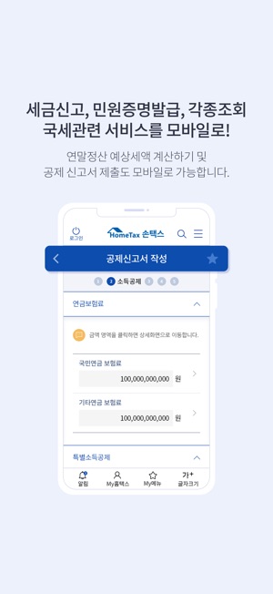 - 세무 정보 조회 : 자신의 세금 내역, 납부 내역 등을 조회할 수 있어 관리가 용이합니다.