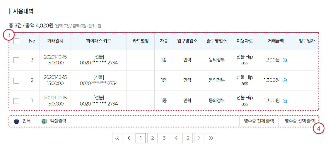 하이패스 사용내역 조회 후 할 수 있는 것들