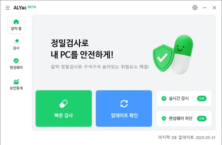 알약은 다양한 악성코드를 실시간으로 탐지하여 사용자의 PC를 안전하게 보호합니다.