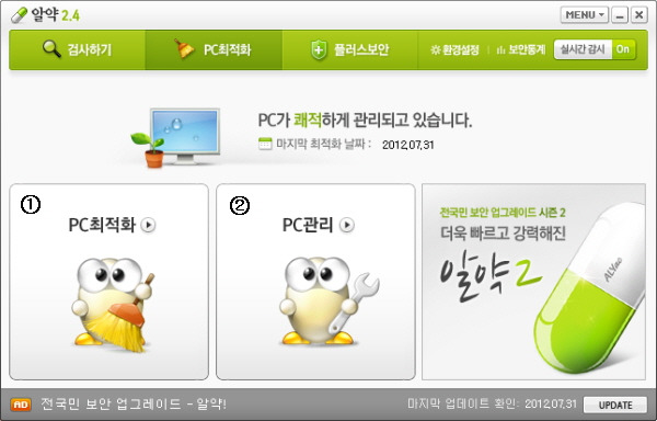 알약은 다른 백신 프로그램에 비해 가벼운 시스템 자원 소모와 빠른 스캔 속도를 자랑합니다.