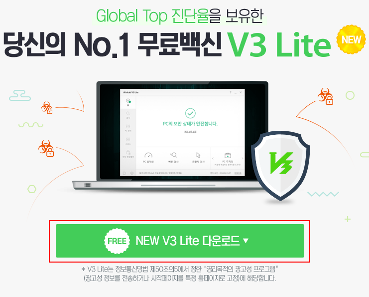 그래서 많은 분들이 무료 백신을 찾고 계신데요, 그 중에서도 AhnLab의 V3 Lite가 많은 사랑을 받고 있습니다.