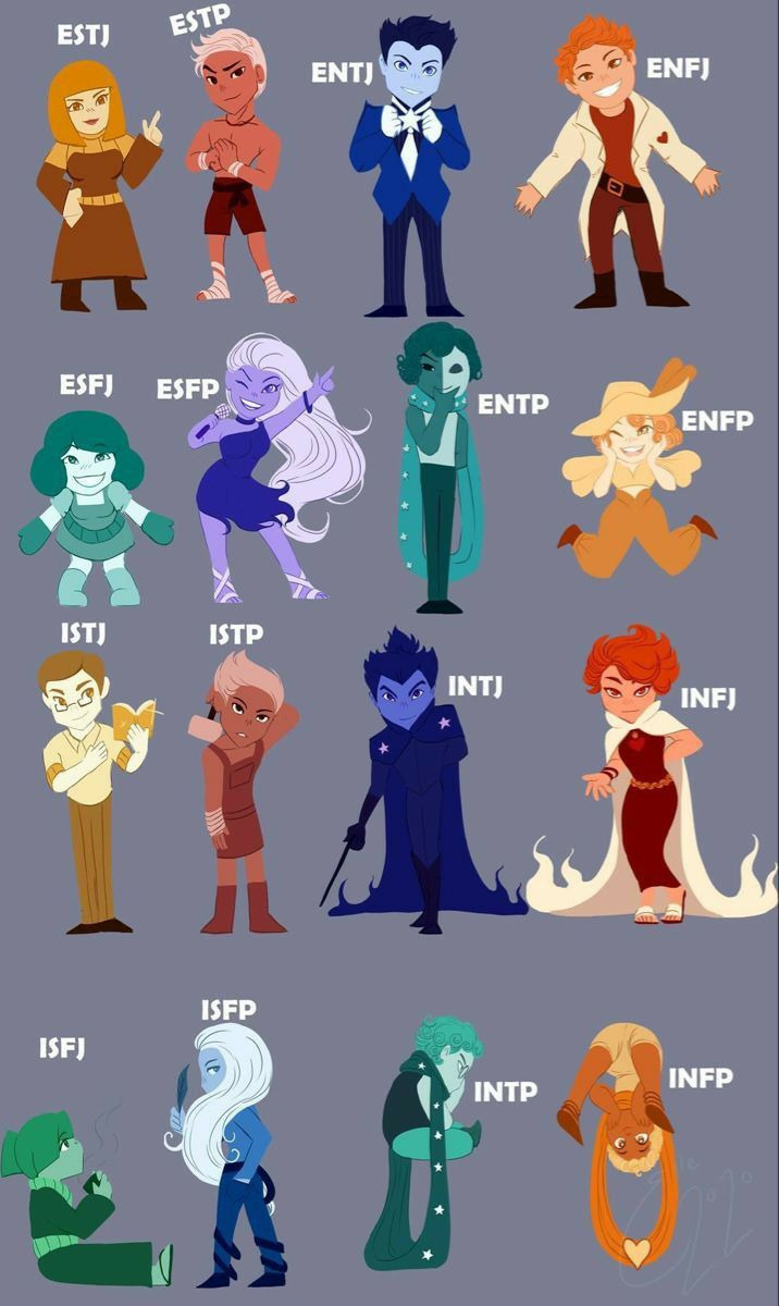 이 네 가지 차원에서의 조합으로 16가지 성격 유형이 만들어집니다.