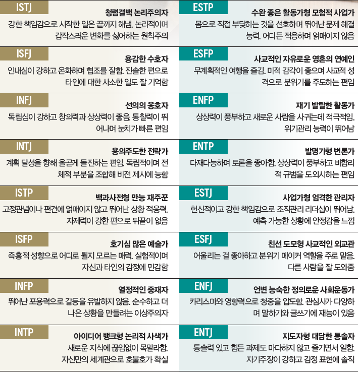 각 유형에 대한 자세한 설명은 위의 검사 사이트에서 확인할 수 있습니다.