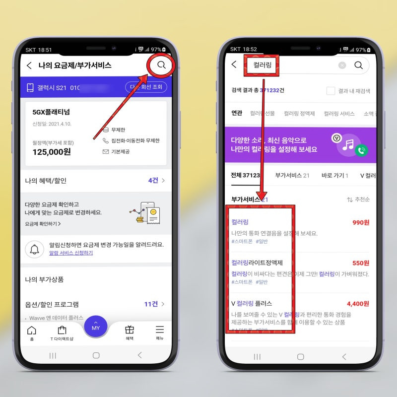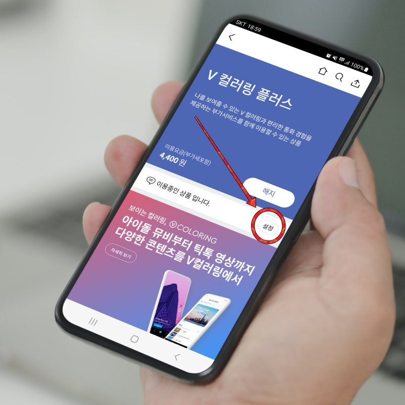 - 컬러링 메뉴 선택 : 앱 내에서 '부가서비스' 또는 '컬러링' 메뉴를 찾아 선택합니다.