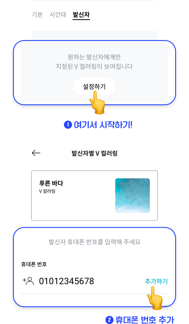 - 컬러링 선택 : 제공되는 다양한 컬러링 목록에서 원하는 곡을 선택합니다. 미리 듣기를 통해 확인할 수 있습니다.