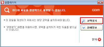 가장 먼저 영상 재생 실패 시 나타나는 곰플레이어의 '코덱 찾기' 버튼을 클릭하여 안내에 따르는 것이 가장 안전한 시작입니다.