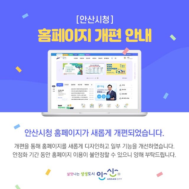 여러분이 누리는 모든 행정 혜택이 든든한 일상의 기반이 되고 안산시청과 함께하는 시간이 여러분의 삶을 더 안정적이고 활기차게 만드는 행복한 시작이 되길 응원합니다.