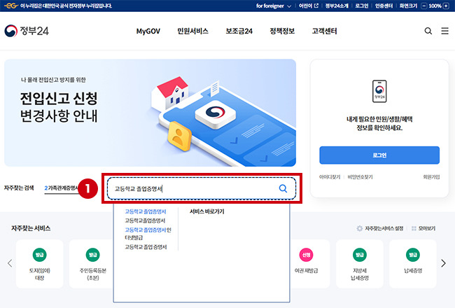 - 검색 : 검색창에 '정부24'를 입력하고 검색합니다.