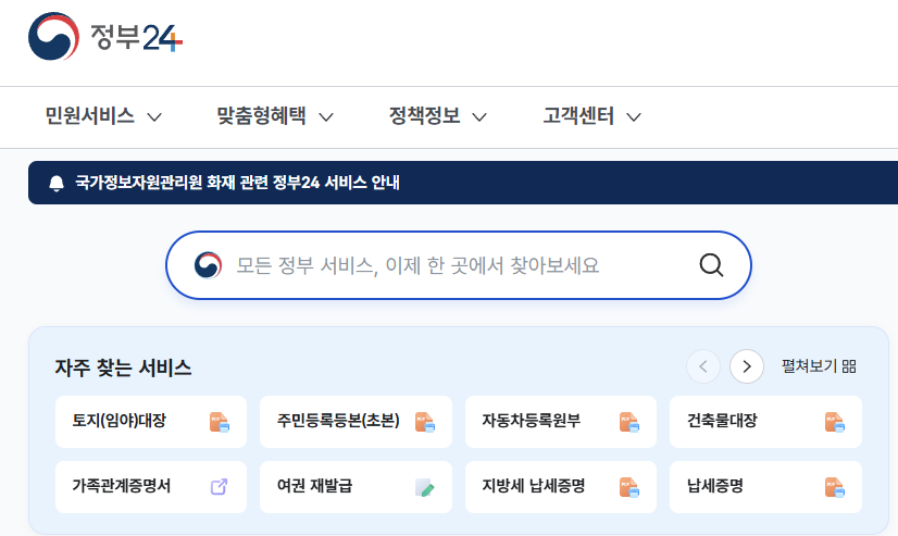 - 민원 신청 : 필요한 민원을 온라인으로 신청할 수 있습니다. 예를 들어, 주민등록등본, 가족관계증명서 등을 신청할 수 있습니다.
