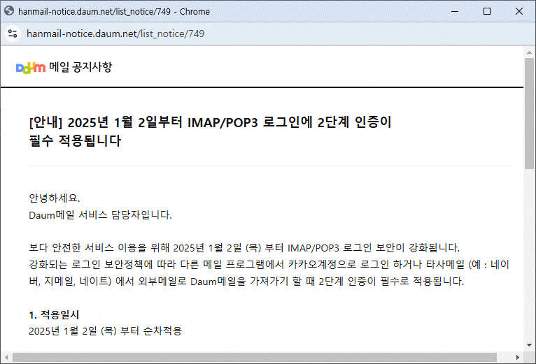 다음 한메일의 보안 기능
