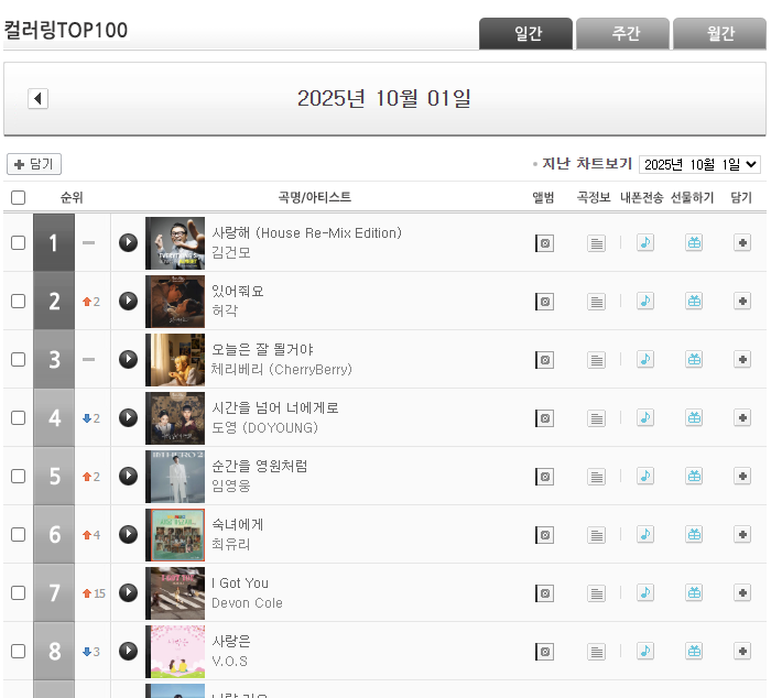 예를 들어, 벨365나 T world와 같은 사이트가 있습니다. 사이트에 접속한 후, 원하는 곡을 검색하고 다운로드 버튼을 클릭하면 됩니다.