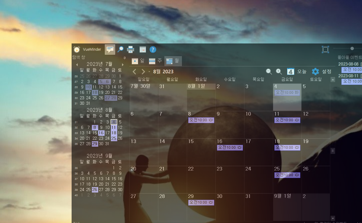 - Active Desktop Calendar : 바탕화면 배경과 통합되어 사용되며, 일정 관리에 최적화된 프로그램입니다.