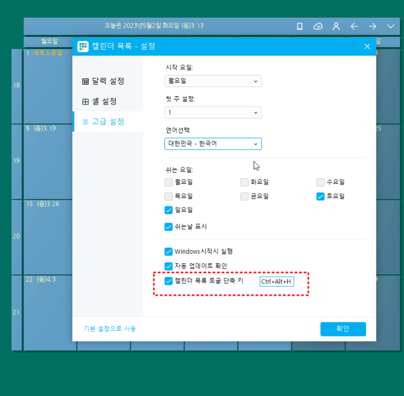 바탕화면 달력 사용 팁