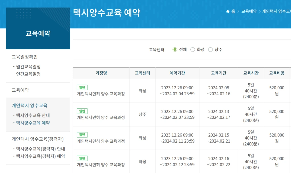 개인택시를 운영하고자 하는 분들에게는 양수교육이 필수적입니다.