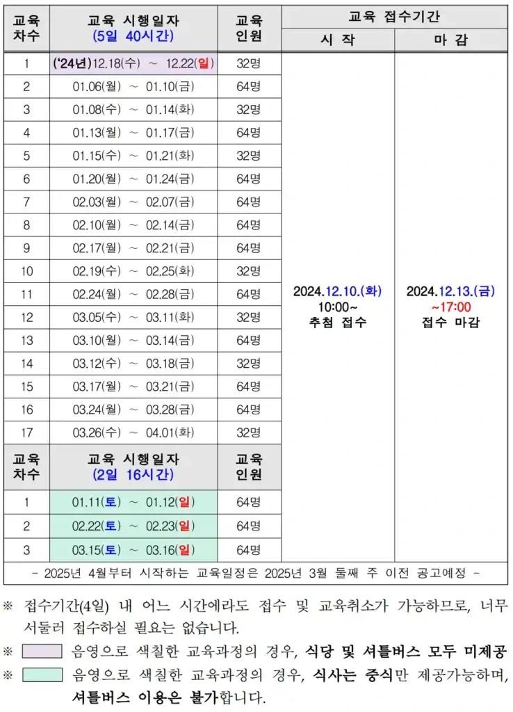 - 교육 일정 확인 : 교육 일정은 교통안전공단의 공지를 통해 확인할 수 있습니다.