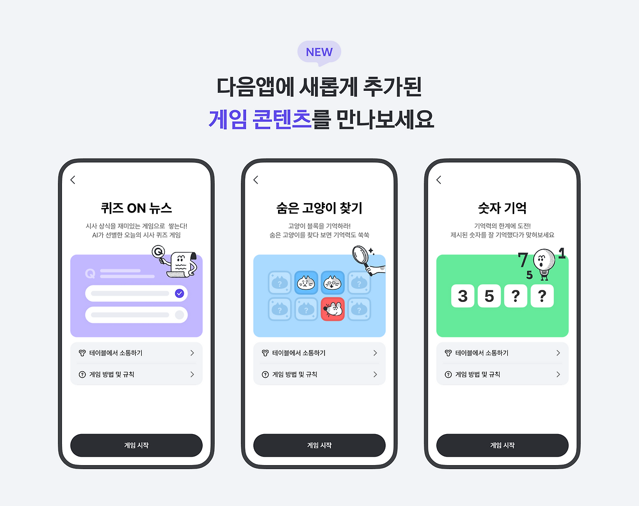 - 뉴스 : 최신 뉴스와 이슈를 빠르게 확인할 수 있습니다.