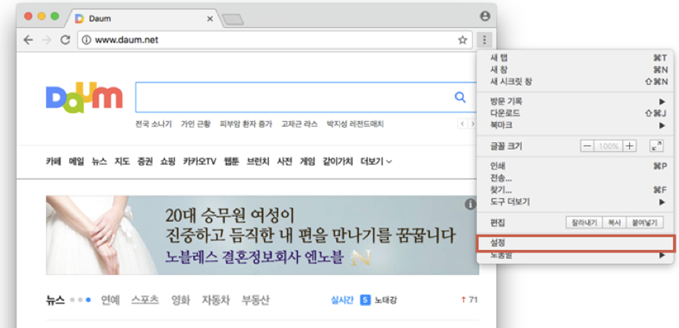 다음을 자주 이용하는 분이라면, 다음을 시작페이지로 설정하는 것이 좋습니다.