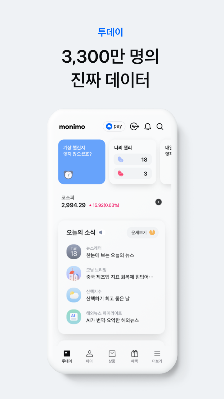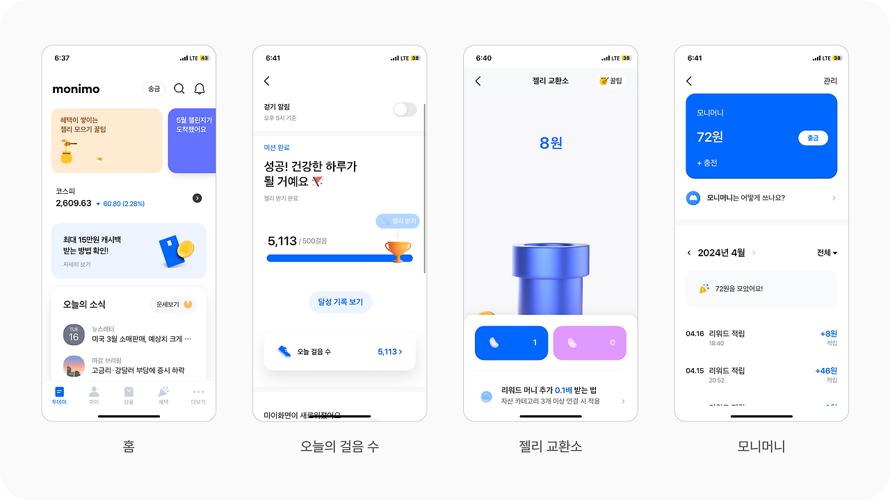 모니모 앱은 다음과 같은 주요 기능을 제공합니다: