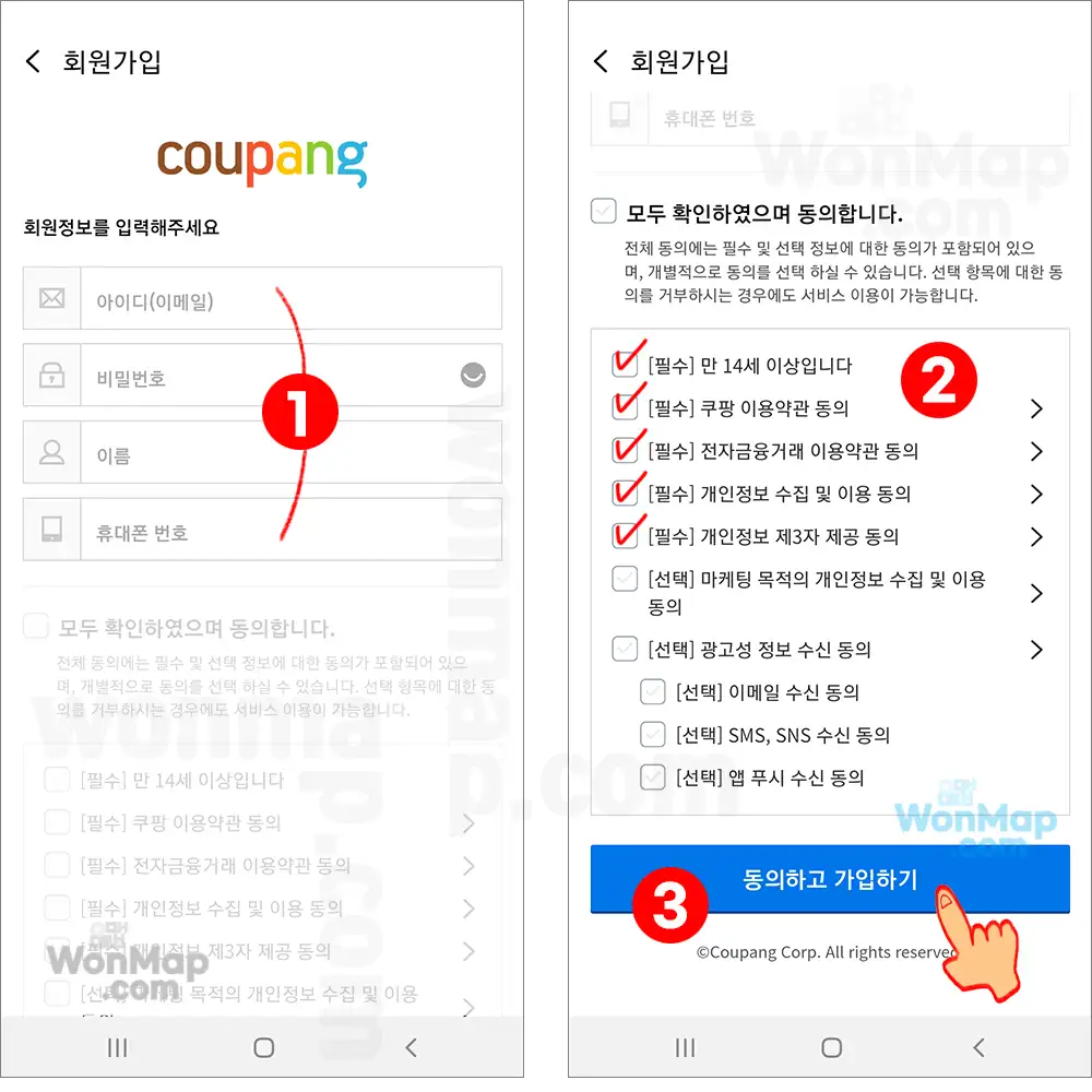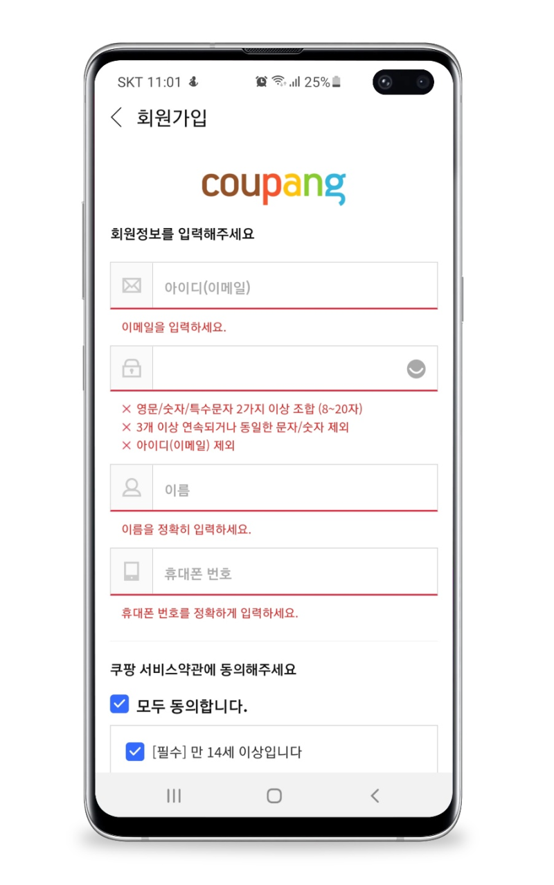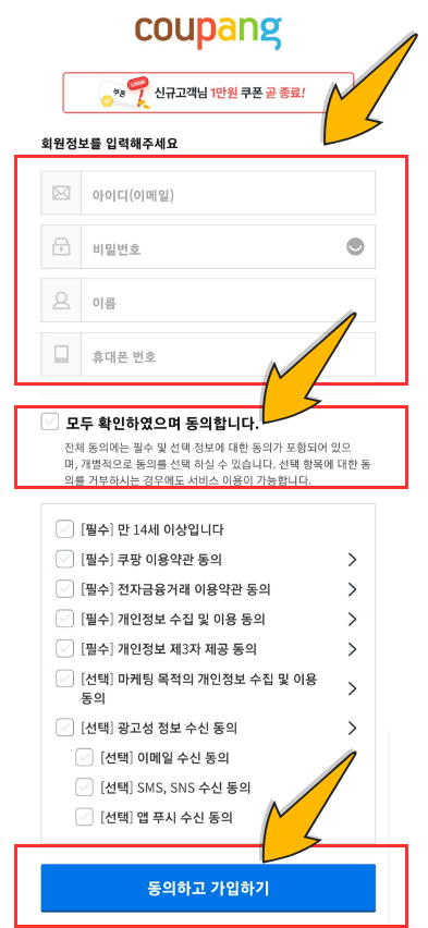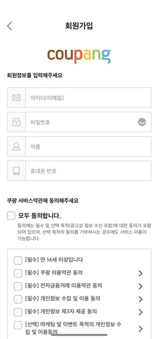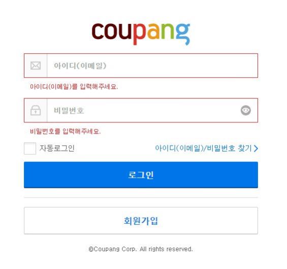 쿠팡에서 쇼핑을 하려면 회원가입이 필수입니다.